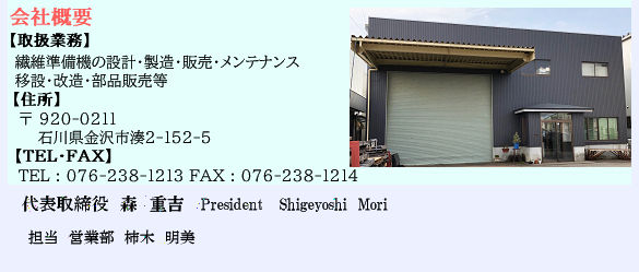 繊維準備機の総合メーカー (株)カキノキインターナショナル