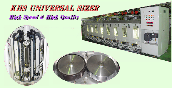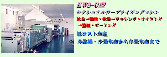 Warp Sizinng system under KWS-U type Sectional Warp Sizinng Machine is composed of various KAKINOKI Preparatory Machinery that have so far been in the wide use, sizing device,and drying device.