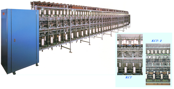 2本諸、3本諸の糸を下撚→合糸→上撚と一連の工程で合撚糸する省力化された撚糸機です。
